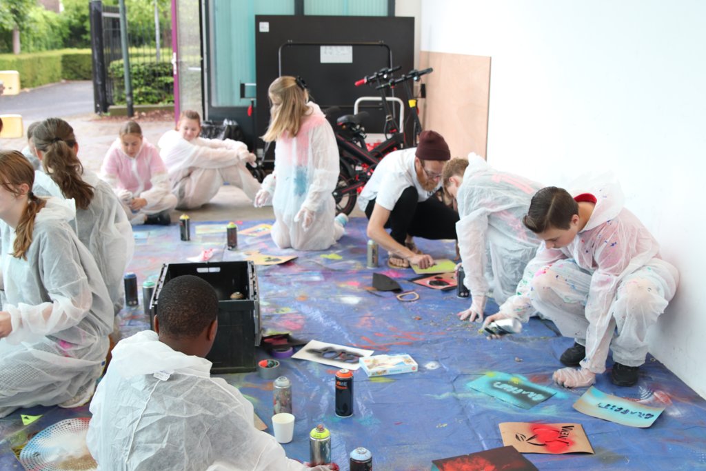 allen in twee rondes de volgende workshops: DJ, Graffiti, Djembé en Karikatuur