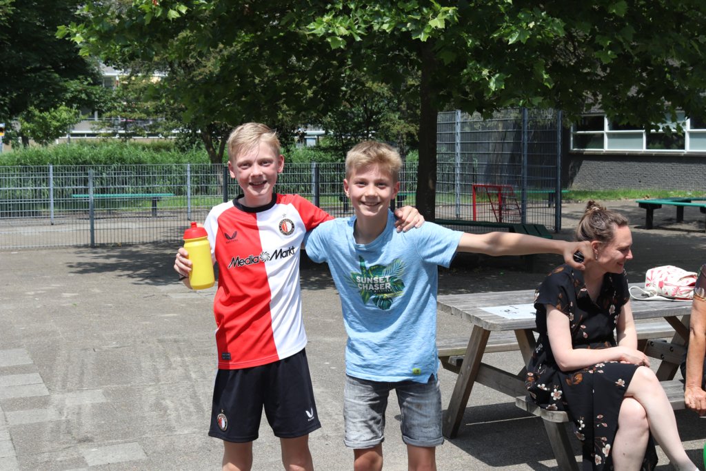 De eerste renners van de mini-triatlon haalden, ondanks de hitte, in recordtijd de finishlijn. Daar werden zij onder luid gejuich ontvangen door aanmoedigende docenten en ouders. Hun teamgenoten hadden eerder al baantjes gezwommen in zwembad Groenoord en kilometers gefietst door de Broekpolder.